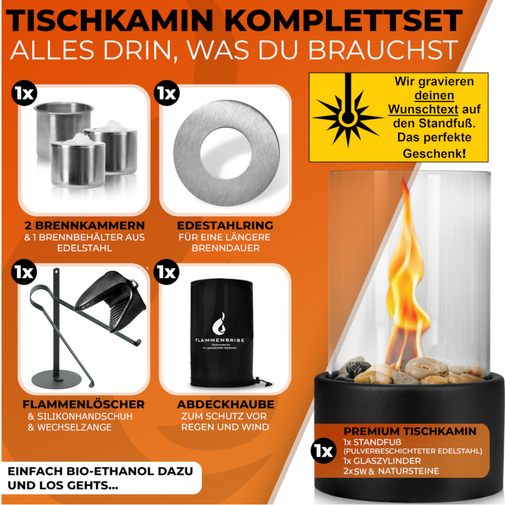 Tischkamin Komplettset – personalisierbar mit Gravur | Tolle Geschenkidee
