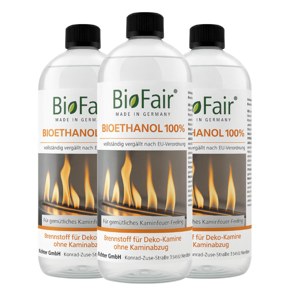 BioFair Ethanol 100% wird aus nachhaltigen Rohstoffen hergestellt und trägt zu einer umweltfreundlicheren Wohnatmosphäre bei. Erfahren Sie mehr über die umweltfreundlichen Vorteile von Ethanol in unserem Artikel Ethanol für Kamine: Umweltfreundlichkeit und Nachhaltigkeit.
