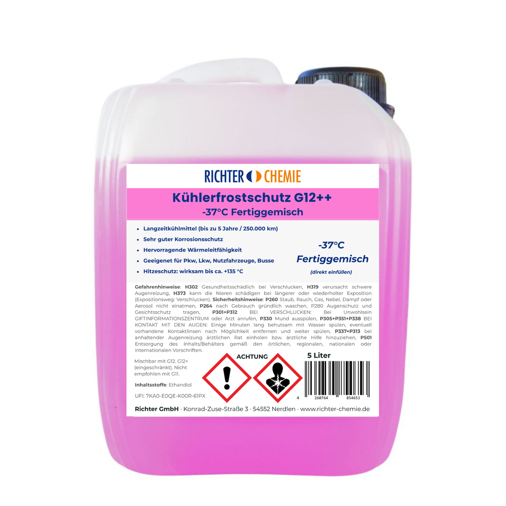 Kühlerfrostschutz G12++ Fertigmix (−37 °C) zur direkten Verwendung