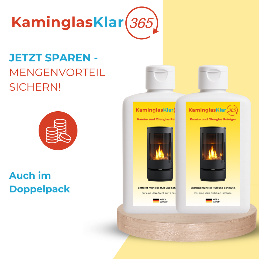 Kaminofen-Besitzer wissen: Nichts trübt die Stimmung mehr als eine verrußte Scheibe. KaminglasKlar365 Kaminglasreiniger ist der speziell entwickelte Kamin- und Ofenglas-Reiniger, der Ruß, Rauch- und Schmutzbeläge schnell löst und streifenfreie Sicht aufs Feuer zurückbringt. Ideal für Kaminöfen, Kamineinsätze und Ofentüren – einfach anwenden, effizient reinigen, länger genießen.